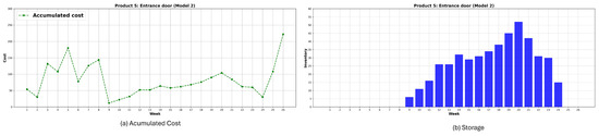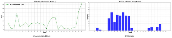Products 3 and 4 produced moderately similar and intermediate results on cost and RMSE, indicating that the LSTM network reasonably well-identified sales trends for these products despite the considerable differentiation on the MAPE obtained for both. Product 5 incurred the highest cost, due to the network’s difficulty accurately forecasting high sales values, though it still maintained an acceptable RMSE and the second-lowest MAPE.