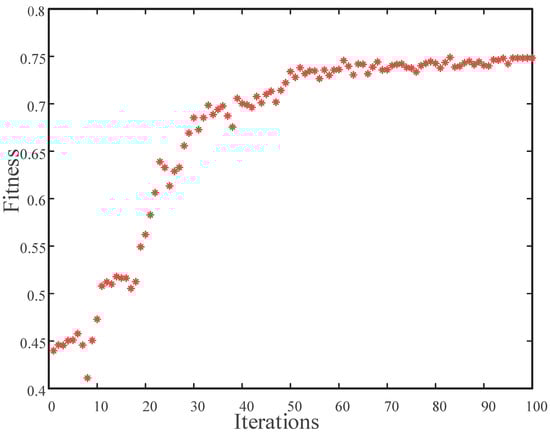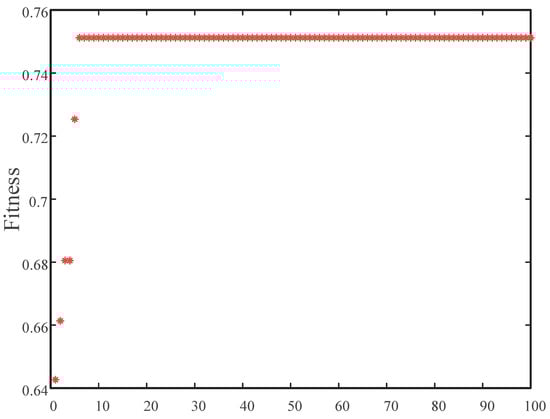 In Figure 9, when the particles evolve to the sixth generation, the main search swarm history global optimal particle fitness value reaches the maximum and is stable.