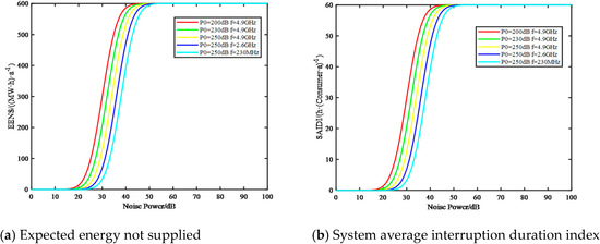 The variation of system reliability indexes under different noise powers is shown in Figure 6.