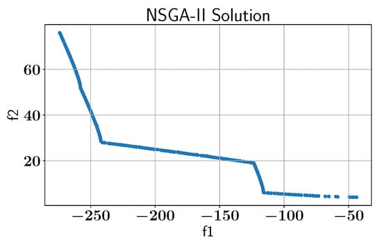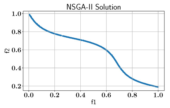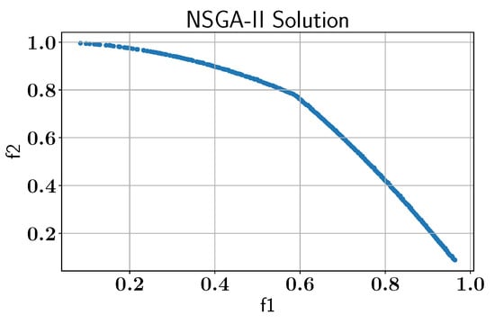 Case study VI: Pareto-front solution found by NSGA-II without AL using pymoo library.