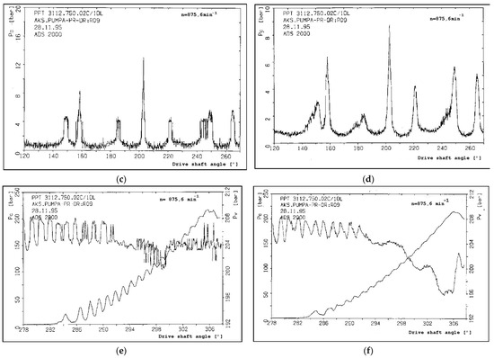 - Pressure pc in the cylinder as a function of the pump drive shaft angle
