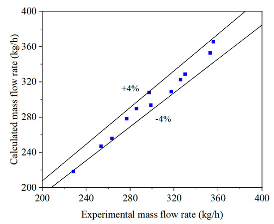 Comparison between calculated and experimental mass flowrates.