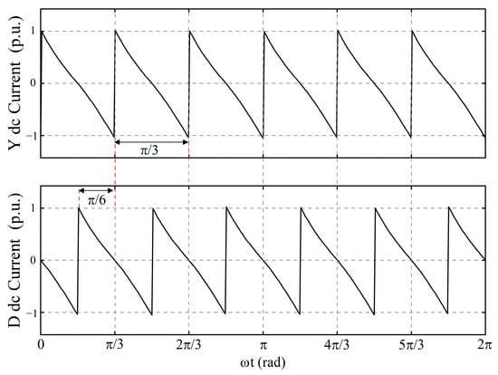 where Kn is the transformation ratio of the Y/Y side transformer. Taking the RMVSC dc current as the reference value, the per-unit currents on both sides of the main bridge within one voltage cycle are shown in Figure 3.