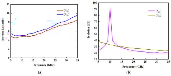 Figure 6 shows the simulated isolation results. A superior isolation performance of nearly 90 dB around 10 GHz of S31 can be seen in