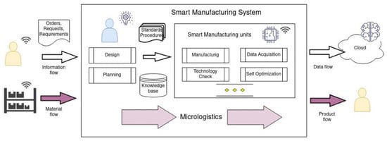 Smart manufacturing systems, as depicted in Figure 5, as defined by the National Institute of Standards and Technology [36], must be capable of responding in real time to changes in conditions and requirements. Digital Twins, which are digital representations of physical elements, utilize IoT data and sensors to monitor operations and support decision-making processes. They are used at various stages of the product lifecycle or the manufacturing system.