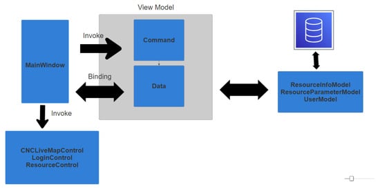Creating a CNC machine operator interface with Windows Presentation Foundation (WPF) [38] utilizing the Model-View-ViewModel (MVVM) design pattern offers a structured, scalable, and maintainable solution for desktop applications. WPF, as a UI framework designed for developing visually appealing desktop applications, when paired with the MVVM pattern, facilitates a clear separation between the user interface (View), business logic (Model), and data binding logic (ViewModel). This makes it a favored choice for industrial applications, including CNC machine monitoring. In the context of a CNC machine operator interface, MVVM and WPF provide a flexible and powerful platform for real-time monitoring, control, and diagnostics.