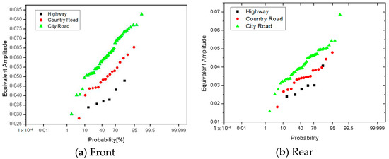 Equivalent amplitude of front and rear damper with respect to road conditions.