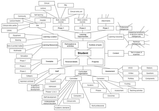 Harden [92] focuses on curriculum mapping as an essential tool in medical education to make curricula more transparent and authentic for all stakeholders [92]. This author addresses the problem of complexity and miscommunication in curriculum development, especially about the coordination and understanding of what is taught and assessed in the curriculum (see Figure 5).