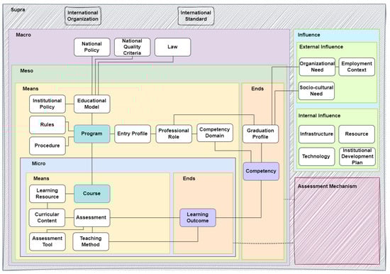 In addition, a group of experts in curriculum design and higher education from various universities in the region were consulted to assess the proposed metamodel’s coherence, applicability, and relevance [18]. This validation process included feedback sessions in which the experts analyzed the metamodel’s capacity to improve alignment between the different levels of the curriculum and its adaptability to changes in technological competencies. The experts’ observations adjusted and enhanced the metamodel, strengthening its practical feasibility.