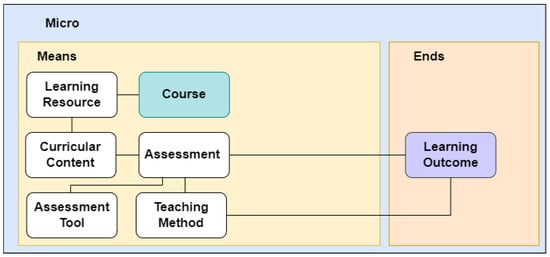 At the micro level, teachers organize the teaching-learning process of their respective subject programs following the guidelines provided by the educational institution [33]. At this level, the expected LOs should be related to course content, assessments, and teaching-learning methodologies.
