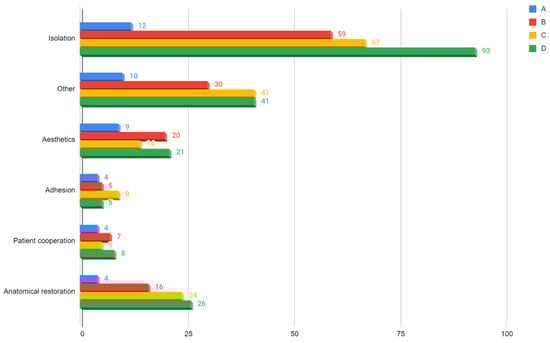 | Graduation Year | Isolation | Other | Aesthetics | Adhesion | Patient Cooperation | Anatomical Restoration | Total |