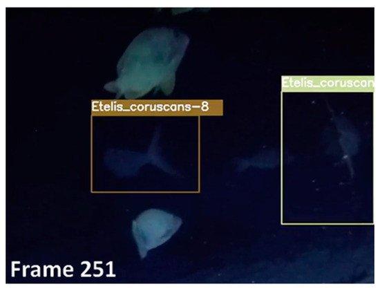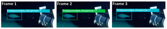 These outcomes were expected since we anticipated that the model would generate a higher number of detections for species with abundant samples. This essentially implies that the likelihood of the model overlooking these species on the screen is quite low, and therefore, the tracker would remain inactive for extended durations. In contrast, for species with limited sample data, we expected the opposite behavior, with the tracker being active for more extended periods. This would enable the correction of numerous false negatives as a consequence (Figure 5 and Figure 6). As marine ecosystems are composed of more rare than common species, the use of those algorithms could help to overcome the data scarcity and the data imbalance between species. Furthermore, as those species have an important impact on the ecosystem [32,33], missing them during fish community census would greatly change the assessment of such communities.