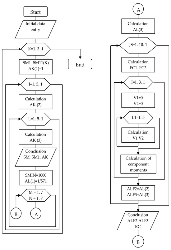 In taking into account the change and the angular positions of the rotor, the algorithm for calculating the mechanical characteristics of the three-engine MAED system is shown in Figure 2. This figure also plots the mechanical characteristics when changing various parameters. By changing the values of these coefficients and angles [15], we obtained many graphs of mechanical characteristics, as shown in Figure 2.