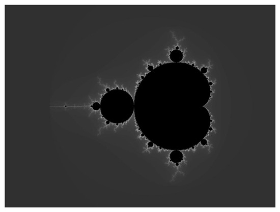 where c is a complex number, and it is in the Mandelbrot set if the succession does not tend to infinity. If we represent all the points in the complex plane, coloring all the points that belong to the set in black and the points that do not belong to the set with other colors, we obtain the Mandelbrot fractal, as shown in Figure 3.