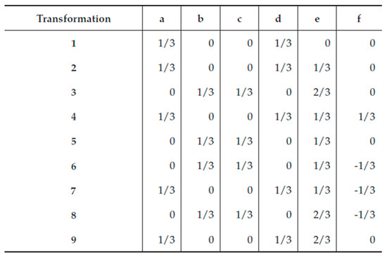 The values of the Peano set are determined by iteratively repeating a set of nine affine transformations whose values are listed below in Figure 5.
