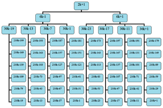 where k is the counting index, is a prime number obtained at the level m − 1, j is the level of decomposition, and the prime number obtained. So, the algorithm stores the candidate prime numbers useful for multiscale generation gradually, up to the nearest prime number of the input. Therefore, the key elements to the algorithm are the following: