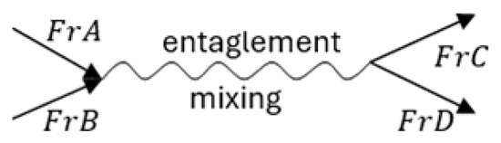 The algorithm then continues on to the quantum security part, which we anticipated in the introduction. The technique used to guarantee this property regards operations inside the newly obtained product matrix, and it draws inspiration from quantum mechanics, specifically the scattering theory. The technique consists of creating two fragments of matrix digits of a certain length and “colliding” them to create two new fragments, mixing the digits in them. In this case, the crypto-agility consists of dynamically evolving each fragment, which means that at different times, the fragment will be in a different position from its initial allocation. For each fragment created and at every moment the daemon is free from a task, it takes two fragments, FrA and FrB, which have two contents, Ca and Cb, and gives as output two new fragments FrC and FrD with contents Cc and Cd. Figure 10 shows this interaction.