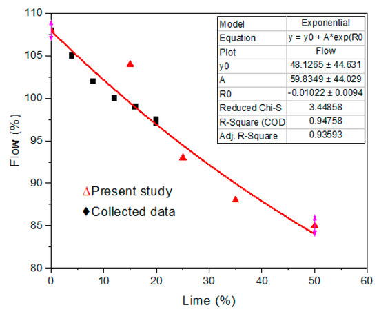 where represents the consistency of modified cement–lime mortar and represents lime content %.