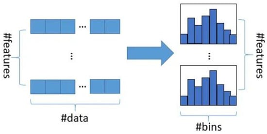 For the given problem of categorizing the causes of abnormal pressure, a decision tree algorithm suitable for treating numerical values as categorical symbols was chosen, combined with gradient boosting and histogram techniques, to construct an efficient and accurate LightGBM model. During model construction, the advantages of decision tree algorithms were fully utilized to map continuous numerical features to categories of abnormal mechanisms. By binning the numerical values, the model can treat these numbers as categorical symbols, better fitting the needs of the problem. LightGBM is an improved version of the gradient boosting tree algorithm that optimizes the algorithm and data structure to enhance training speed and memory efficiency. Below are the principles of the GOSS algorithm: LightGBM adopts the GOSS vertical parallelization training algorithm, which selects a portion of samples with large gradient values for training and samples those with small gradient values to reduce dataset size, maintaining model accuracy while significantly reducing training time and memory consumption. In the histogram optimization algorithm, LightGBM uses the GOH histogram optimization algorithm. Instead of sorting feature values traditionally, it bins feature values into histograms, reducing sorting complexity and increasing training speed, as shown in Figure 4.