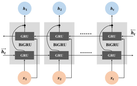 As shown in Figure 3, the Bi-directional Gated Recurrent Unit (BiGRU) model introduces a forward and backward propagation mechanism in the conventional unidirectional GRU model [37,38].