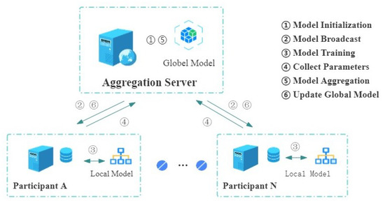 Federated learning is a distributed machine learning framework introduced by McMahan et al. [12] from Google in 2017 and implemented in language prediction models on smartphones. It enables the training of a unified machine learning model using datasets distributed across different mobile devices without compromising the privacy of individual user data. Each FL client performs local training, and the computed updates are transmitted to a central entity known as the aggregator. This aggregator is responsible for generating a refined global model by processing the received updates using an aggregation function. As shown in Figure 1.