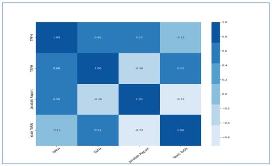 Figure 4 illustrates significant correlations among anthropometric measures. A strong negative correlation (R = −0.72, p < 0.001) between Jarabak’s ratio and y-axis to SN indicates that as Jarabak’s ratio decreases, the y-axis to SN angle increases. Additionally, a moderate positive correlation (R = 0.53, p < 0.001) was observed between the y-axis to SN and TAFH, suggesting that as the former increases, the latter tends to increase. Furthermore, a moderate correlation (R = 0.60, p < 0.01) between TPFH and TAFH can be observed. These findings emphasize the interconnectedness of different facial measurements, offering insights into craniofacial morphology.