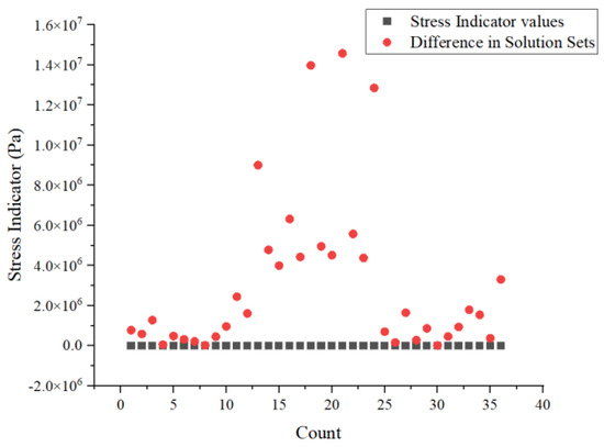 | Stress indicator | The total sum of maximum principal stress values measured along three concentric circular lines around the roadway. | Pa |