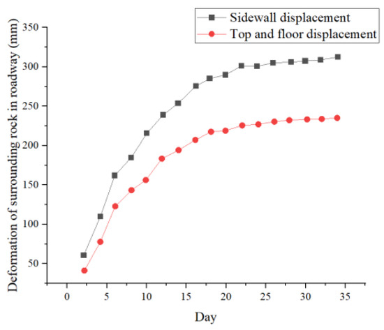 | Floor displacement | The maximum vertical displacement of the roadway floor. | M |