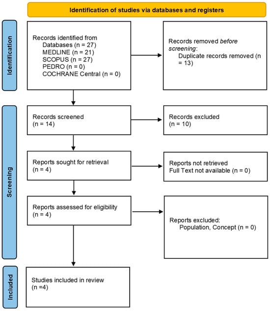 - Tricco, A.C.; Lillie, E.; Zarin, W.; O’Brien, K.K.; Colquhoun, H.; Levac, D.; Moher, D.; Peters, M.D.J.; Horsley, T.; Weeks, L.; et al. PRISMA Extension for Scoping Reviews (PRISMA-ScR): Checklist and Explanation. Ann. Intern. Med. 2018, 169, 467–473. [Google Scholar] [CrossRef]