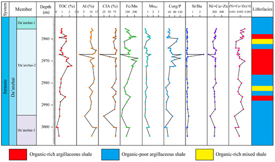 Peng, Y.; Fu, Y.; Chen, S.; Wang, E. Sedimentary Environment Reconstruction and Organic Matter Enrichment Mechanisms in Various Lithofacies of the Lacustrine Shale: A Case Study of the Da’anzhai Member, Central Sichuan Basin, China. Appl. Sci. 2024, 14, 10192. https://doi.org/10.3390/app142210192