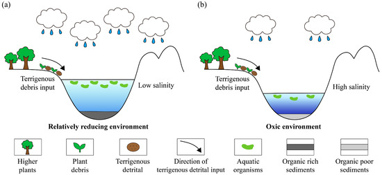 - Xu, W.; Ruhl, M.; Jenkyns, H.C.; Hesselbo, S.P.; Riding, J.B.; Selby, D.; Naafs, B.D.A.; Weijers, J.W.; Pancost, R.D.; Tegelaar, E.W.; et al. Carbon sequestration in an expanded lake system during the Toarcian oceanic anoxic event. Nat. Geosci. 2017, 10, 129–134. [Google Scholar] [CrossRef]