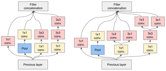 - Szegedy, C.; Vanhoucke, V.; Ioffe, S.; Shlens, J.; Wojna, Z. Rethinking the inception architecture for computer vision. In Proceedings of the IEEE Conference on Computer Vision and Pattern Recognition, Las Vegas, NV, USA, 27–30 June 2016; pp. 2818–2826. [Google Scholar]