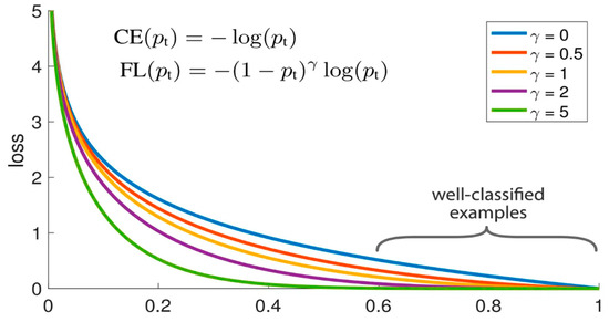 - Lin, T.Y.; Goyal, P.; Girshick, R.; He, K.; Dollár, P. Focal loss for dense object detection. IEEE Trans. Pattern Anal. Mach. Intell. 2020, 42, 318–327. [Google Scholar] [CrossRef]