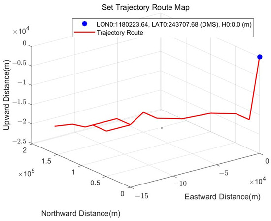 We have built a simulation test platform that can generate trajectory routes for underwater submersibles, and generate measurement simulation data for three sets of SRINSs based on the trajectory routes. The parameters of the three sets of SRINSs used in the simulation process are all the same IMU parameters. The deformation angles between the multiple SRINSs during the simulation process have the same correlation time and standard deviation. Other simulation condition parameters are shown in Table 1. The generated trajectory is shown in Figure 5.