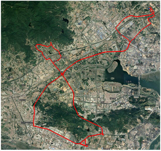 Route Map for the Second Trial (Location: Xiamen City, Fujian Province, China; Starting Point Latitude: 24.6120529175°; Starting Point Longitude: 118.0733718872°; Running Time: approximately 3 h and 45 min).