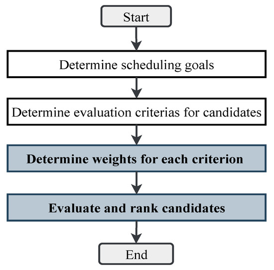 In the field of cloud computing, the goal of service selection is to choose the optimal service from those that provide the same functionality but have different levels of Quality of Service (QoS). Due to the multi-dimensional nature of QoS attributes, this is typically regarded as a Multi-Criteria Decision-Making (MCDM) problem. Service scheduling in a Computing Network is similar to service selection, as it involves selecting the best overall service instance from those capable of performing the same function by comprehensively considering user requirements. Therefore, the service scheduling problem in this context can be modeled as an MCDM problem. Figure 8 shows the steps to solve the MCDM problem:
