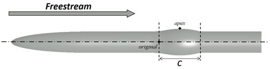 Transonic axisymmetric hump model designed by Bachalo [14] ( is the chord length of the hump, ).
