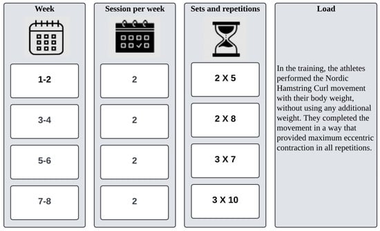 - Ripley, N.J.; Cuthbert, M.; Comfort, P.; McMahon, J.J. Effect of Additional Nordic Hamstring Exercise or Sprint Training on the Modifiable Risk Factors of Hamstring Strain Injuries and Performance. PLoS ONE 2023, 18, e0281966. [Google Scholar] [CrossRef] [PubMed]