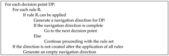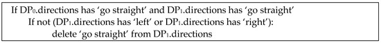 The main goal of this rule is to reduce repeating directions. Directions from two consecutive decision points are compared and finally, some directions are filtered out. The pseudocode for this rule is provided in Figure 8.