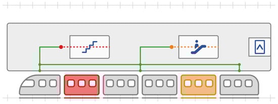 This approach was implemented in the project ‘Development of a prototype system to support the movement of people with special needs inside architectural structures related to rail transport—LIFT’, conducted at the Warsaw University of Technology in 2022–2024. The research was funded by the National Centre for Research and Development in Poland and conducted by an interdisciplinary team of researchers, architects, cartographers, and software engineers. The system analysis was preceded by visits to several European cities, such as Barcelona, Brussels, Amsterdam, and Berlin, to gather best practices of passenger information systems and local applications. The requirements of the system were determined following consultation with experts from foundations working with people with disabilities, who understand the real problems and can evaluate the proposed solutions. Preliminary results of the research were presented at the CSUN Assistive Technology Conference [16] and received a positive response. The project will result in a mobile application being made available to Warsaw Metro users by the end of 2024.