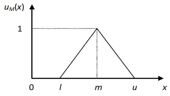 where is the importance weight of criteria, () estimated by the survey’s participants using FRS’s weights and linguistic variables . These linguistic variables can be described by triangular fuzzy numbers, = () and = (), where . In mathematical terms, the fuzzy set A of a universe is defined by a membership function such that → (0, 1), where is the membership value of in as defined below, where = () is a triangle fuzzy number. Here, represents a criterion that belongs to .