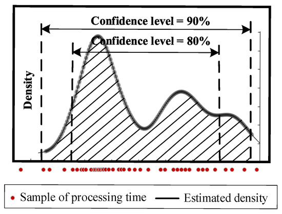 In our research, the Gaussian function commonly used in engineering problems is introduced as the kernel function, and the value of bandwidth is determined through pilot experiments. Building on this work, the processing time of operations can be described through statistical analysis of their historical data. The range of can be described as follows: