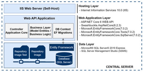 - Hosting Layer: This layer is built on top of Internet Information Services (IIS) 10.0, serving as the foundational component within the WebServer infrastructure. This layer is responsible for hosting and managing the Web API, ensuring its accessibility and performance. It acts as an intermediary between client requests and the Web API, efficiently managing the processing and delivery of web content. The hosting layer is essential for the smooth operation of web services and plays a key role in maintaining the stability and responsiveness of hosted applications.