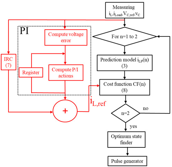 Block diagram of the MPC controller with a PI regulator adapting the current reference based on output voltage error [18,19,20].