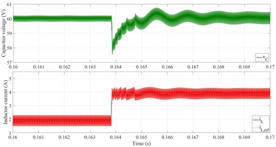 Response of the boost converter with the proposed method to an output voltage step from 60 V to 80 V at t = 0.1 s.