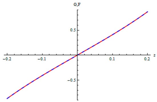 It is remarkable that the maximum difference of is 1.075 × 10−5 and, therefore, the function F is a very good approximation of the function G(z), as can be seen in Figure 2.