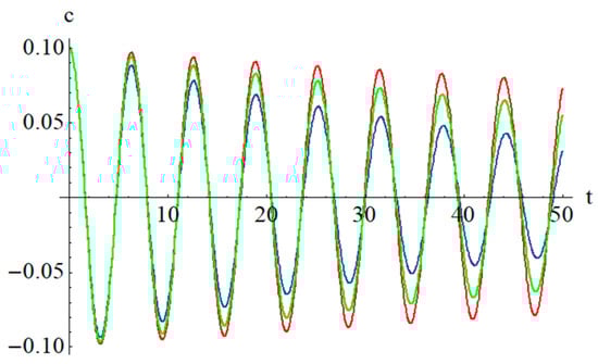 and so on. It is known that there exists a value τ0 for which the movement is damped in the domain [0, τ0]. For τ > τ0, the movement is undamped. Therefore, Equations (40)–(42) are valid on the domain [0, τ0].