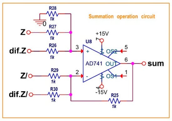 Figure 19 shows how the functions Z and were derived. Each block also contains an inverting op-amp since the first stage has the derived function with negative polarity at its output. Signal summation is performed in the block from Figure 20.