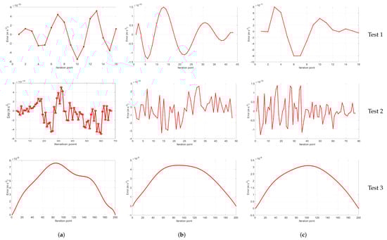 FEM error for three orbital propagated initial positions tests. (a) 100 km. (b) 150 km. (c) 200 km.