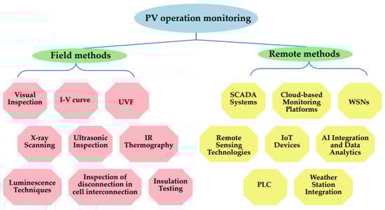 Schematic illustration of field and remote methods for PV operation monitoring.